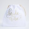 Deze tassen kunnen op vele manieren worden gebruikt, ook als cadeauzakjes voor bruidsmeisjes om sieraden in te bewaren of om katerpakketten te maken voor het vrijgezellenfeest. Onze tassen zijn gemaakt van duurzaam katoenen canvas en gouden koord. Lekker ruim formaat dus ze zijn voor veel dingen bruikbaar. Ze zijn ook gemakkelijk te onderhouden en kunnen in de machine worden gewassen en gedroogd om hun als nieuwe uiterlijk te behouden. We raden aan niet te vaak en tye heet te wassen om de bedrukking perfect te houde.