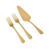 Bruidstaart set. Grote serveerschep met gekartelde rand om de taart te snijden. En de twee vorkjes voor bruid en bruidegom om de allereerste, lekkerste hapjes van de bruidstaart aan elkaar “te voeren”.