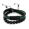 Echt lederen 2-delige armbanden-set voor heren .Gemaakt van 100% runderhuid echt leer en natuursteen. Beide armbanden zijn voorzien van een verstelbare trekkoord sluiting. De leren armband is verstelbaar van 19 – 23cm en is 11mm breed. De kralenarmband heeft eveneens een verstelbare trekkoord en is 6 mm breed. Pakket omvat: 1 leren armband die is opgebouwd uit 3 elementen, zwart met in het midden een groene band en 1 matte kralenarmband van natuursteen,