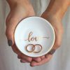 Toon je liefde terwijl je deze ring of sieradenschaaltje laat zien en deelt. De love bowl heeft de perfecte maat voor ringen en andere kleine sieraden en is ook ideaal voor op een dressoir of nachtkastje. De schaal is van keramiek met roomwit glazuur en gouden belettering en bies.
