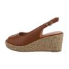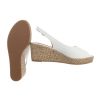 Plateau sandaal met touw beklede platform en sleehak. Ronde uitsnijding bij de voorvoet en een gezellig peep-toe. Sluit met een gesp. Aan het gespje zit een elastiek deel zodat het altijd op z’n plek blijft.