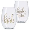 Slank en stijlvol – Vier vrijgezellenfeesten en bruiloften in stijl met onze onbreekbare wijnglazen. Deze glazen voor wijn, bubbels en fruitige drankjes voor vrijgezellenfeesten, gemaakt voor de bruid en haar gevolg, zien er stijlvol uit met hun gouden kalligrafie ontwerp.